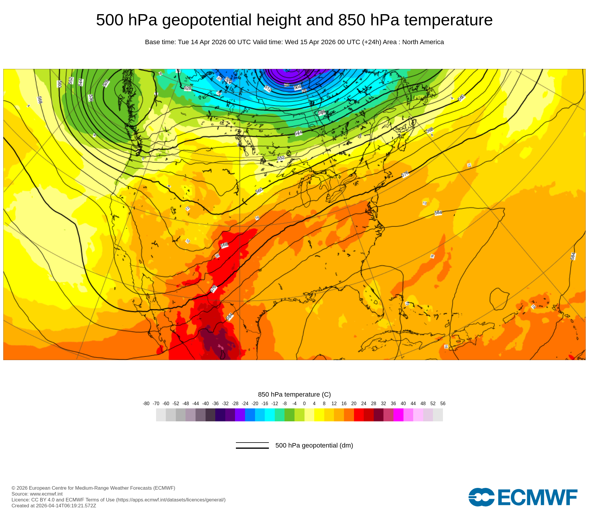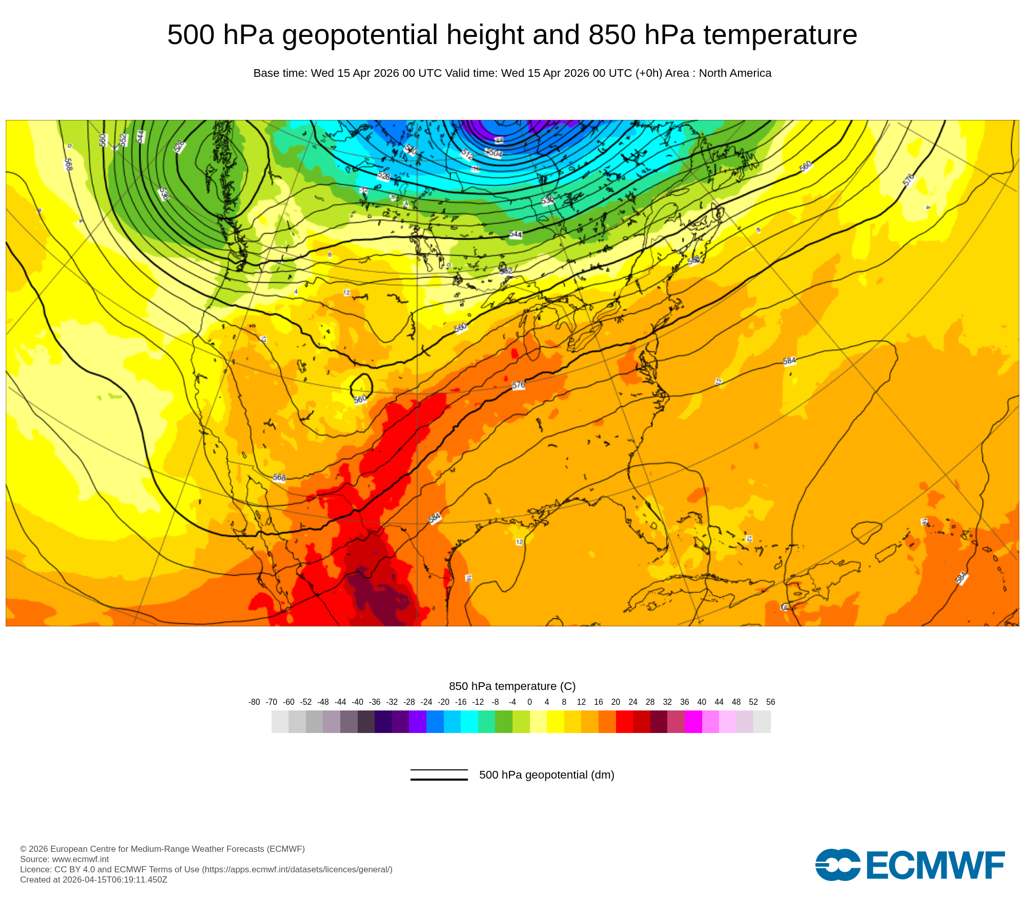 | ECMWF Analysis Wed 04/15/26 00Z | ECMWF 1 Day Forecast Valid Wed 04/15/26 00Z | |