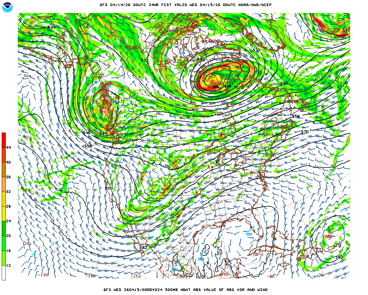 | GFS Analysis Wed 04/15/26 00Z | GFS 1 Day Forecast Valid Wed 04/15/26 00Z | |