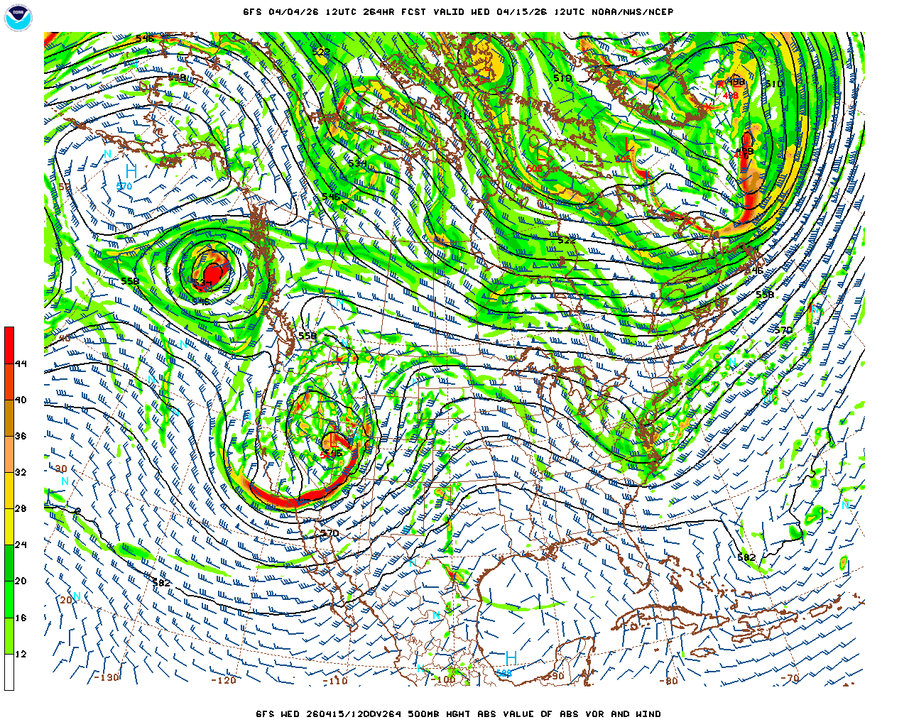 | GFS Analysis Wed 04/15/26 12Z | GFS 11 Day Forecast Valid Wed 04/15/26 12Z | |