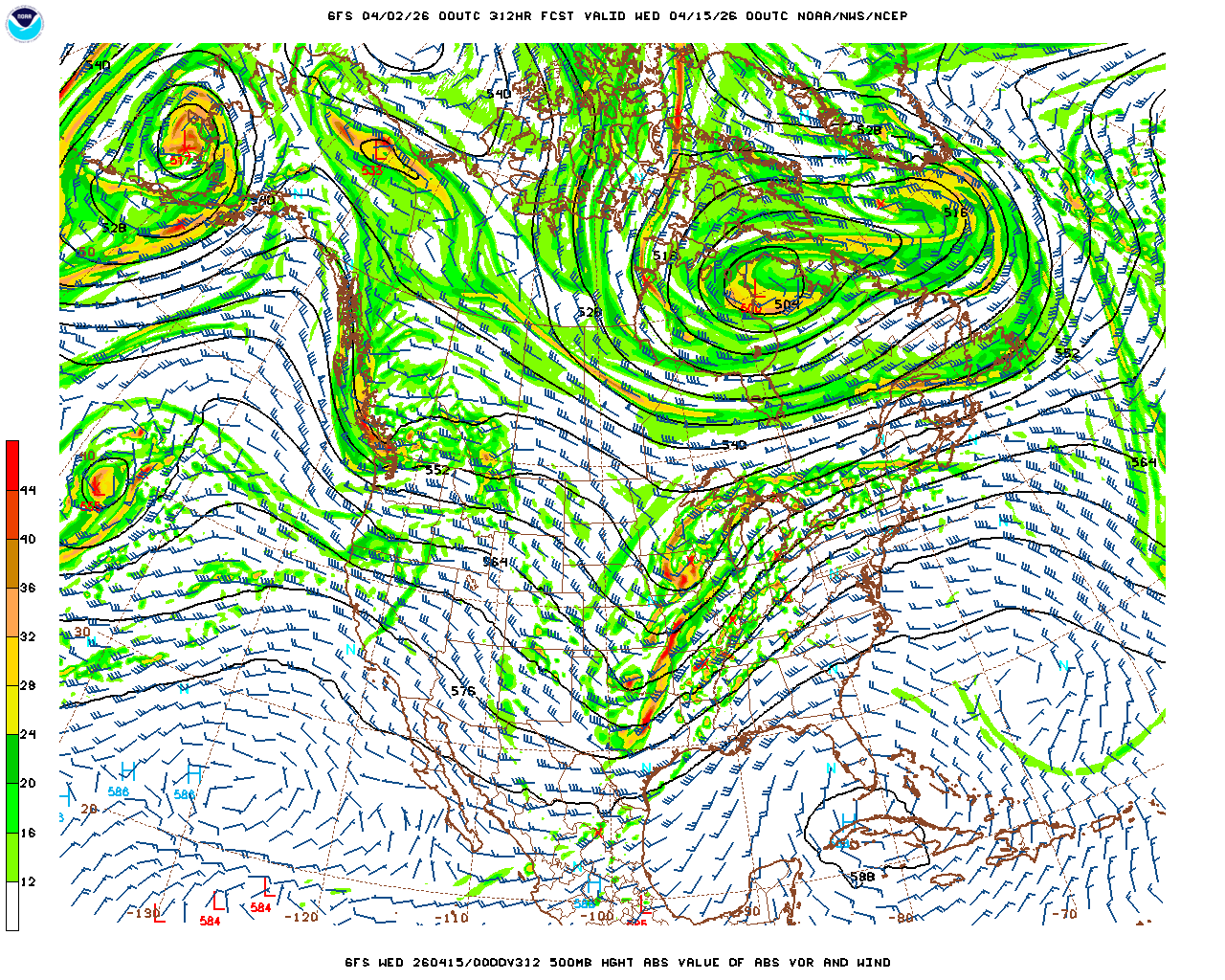 | GFS Analysis Wed 04/15/26 00Z | GFS 13 Day Forecast Valid Wed 04/15/26 00Z | |