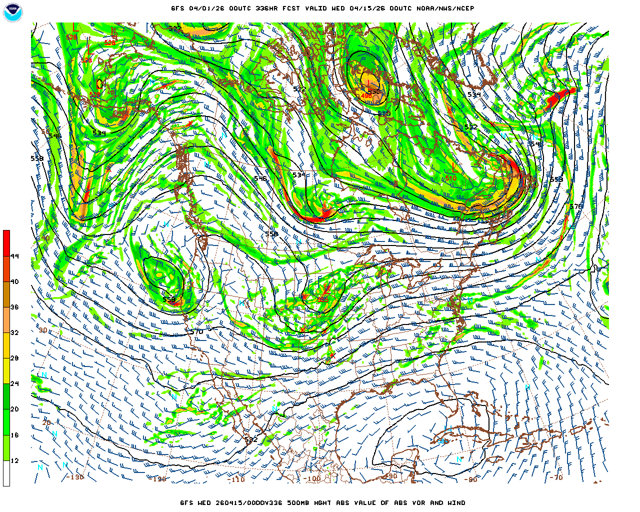 | GFS Analysis Wed 04/15/26 00Z | GFS 14 Day Forecast Valid Wed 04/15/26 00Z | |