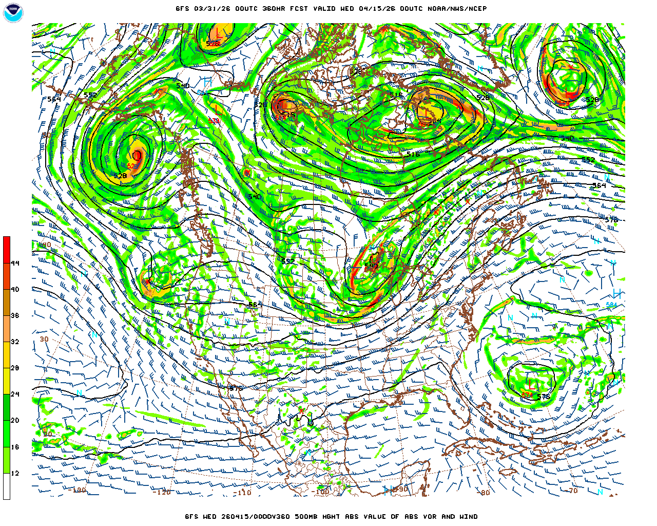 | GFS Analysis Wed 04/15/26 00Z | GFS 15 Day Forecast Valid Wed 04/15/26 00Z | |