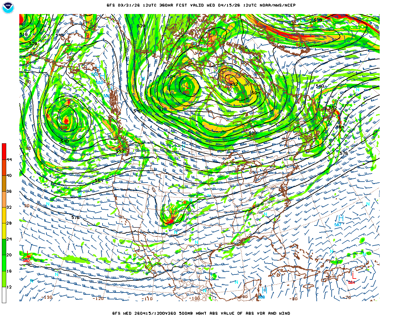 | GFS Analysis Wed 04/15/26 12Z | GFS 15 Day Forecast Valid Wed 04/15/26 12Z | |