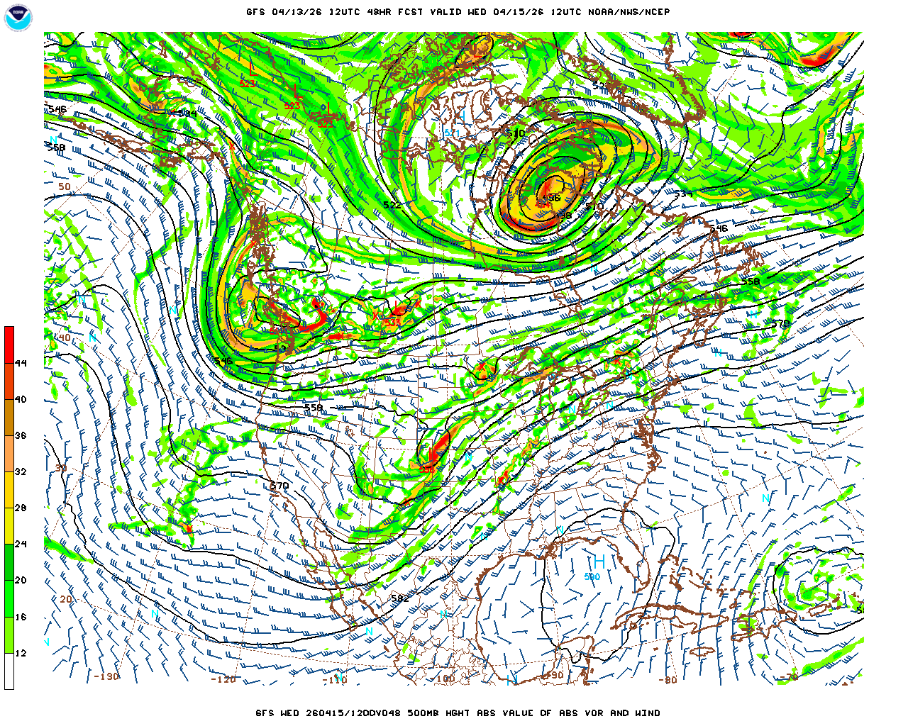 | GFS Analysis Wed 04/15/26 12Z | GFS 2 Day Forecast Valid Wed 04/15/26 12Z | |