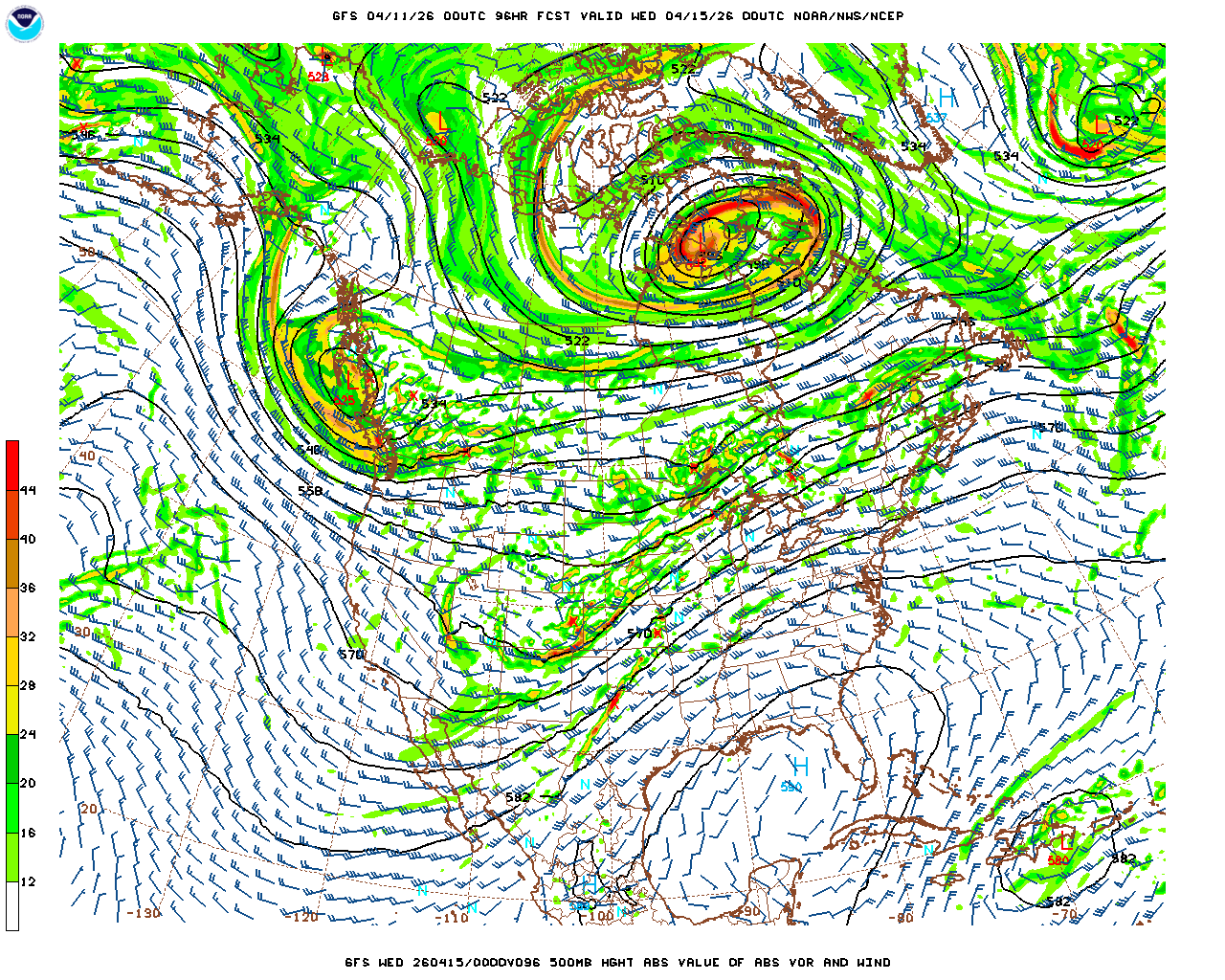 | GFS Analysis Wed 04/15/26 00Z | GFS 4 Day Forecast Valid Wed 04/15/26 00Z | |