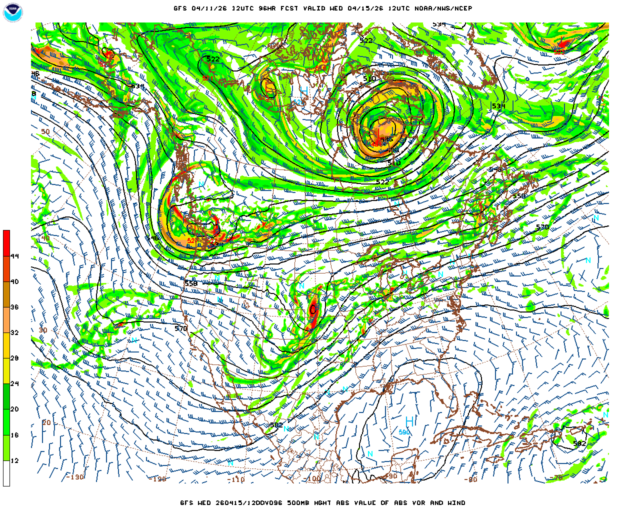 | GFS Analysis Wed 04/15/26 12Z | GFS 4 Day Forecast Valid Wed 04/15/26 12Z | |