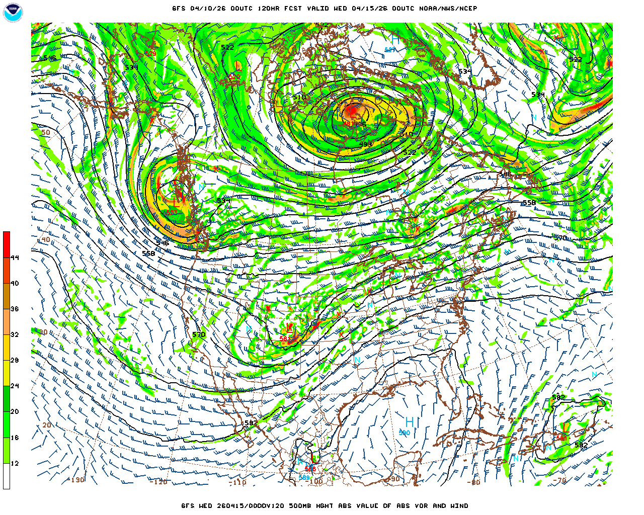 | GFS Analysis Wed 04/15/26 00Z | GFS 5 Day Forecast Valid Wed 04/15/26 00Z | |