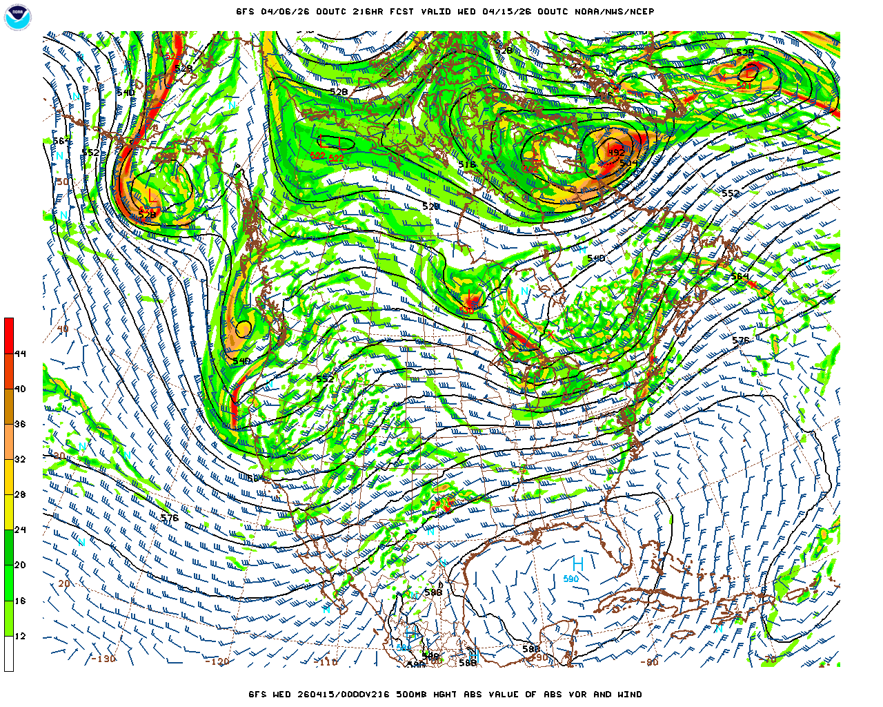 | GFS Analysis Wed 04/15/26 00Z | GFS 9 Day Forecast Valid Wed 04/15/26 00Z | |
