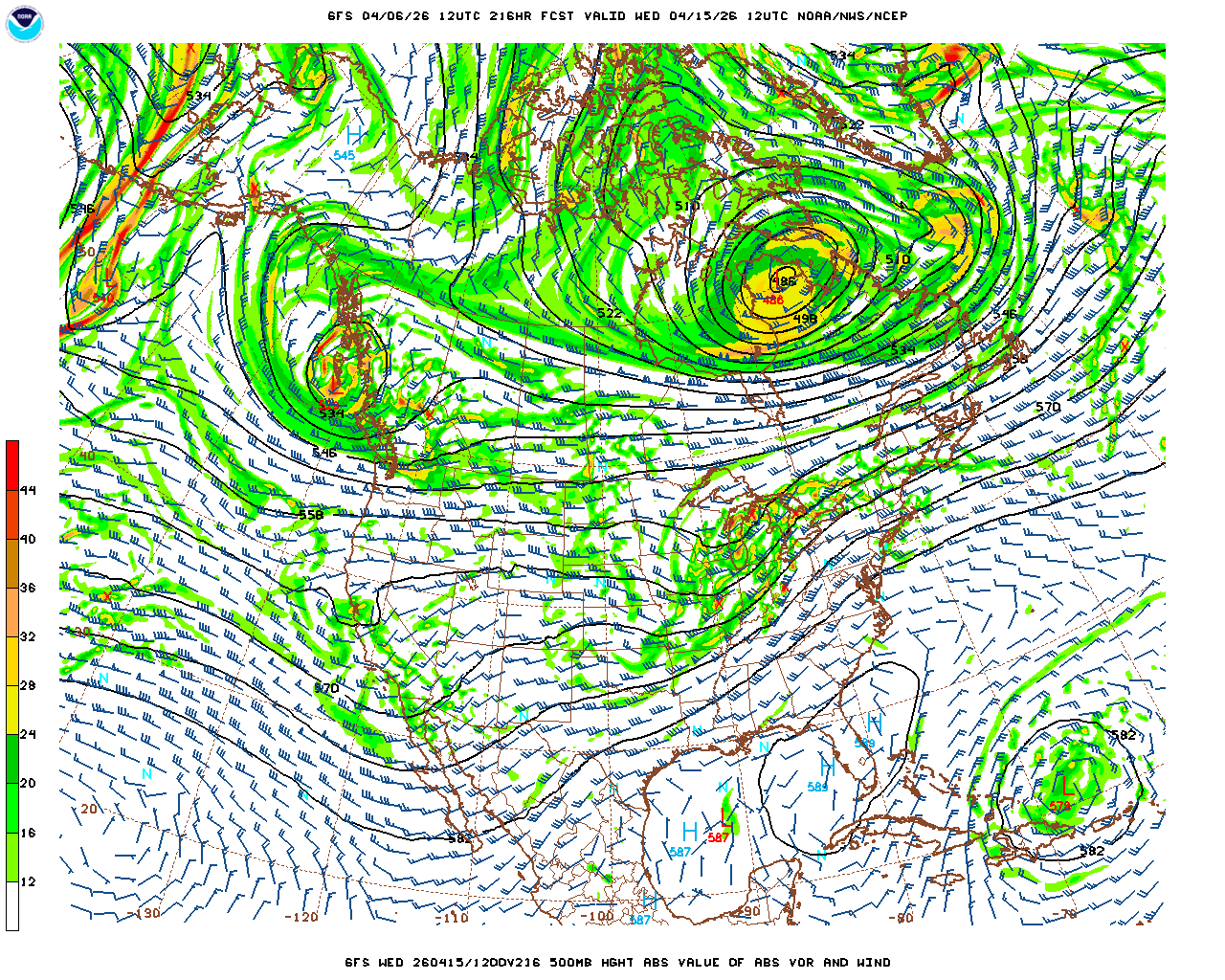 | GFS Analysis Wed 04/15/26 12Z | GFS 9 Day Forecast Valid Wed 04/15/26 12Z | |